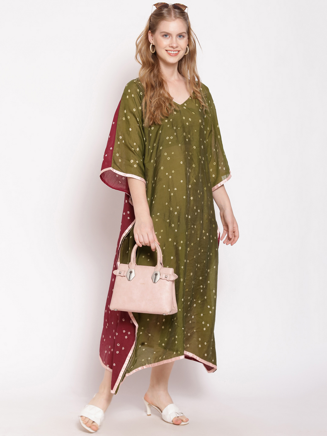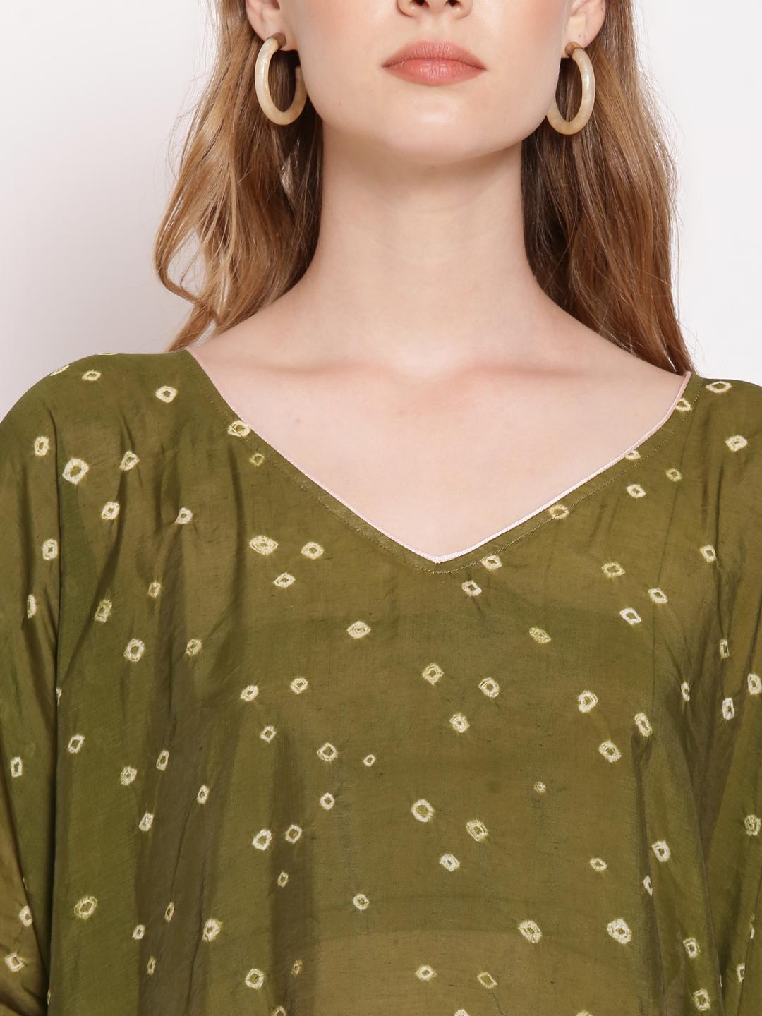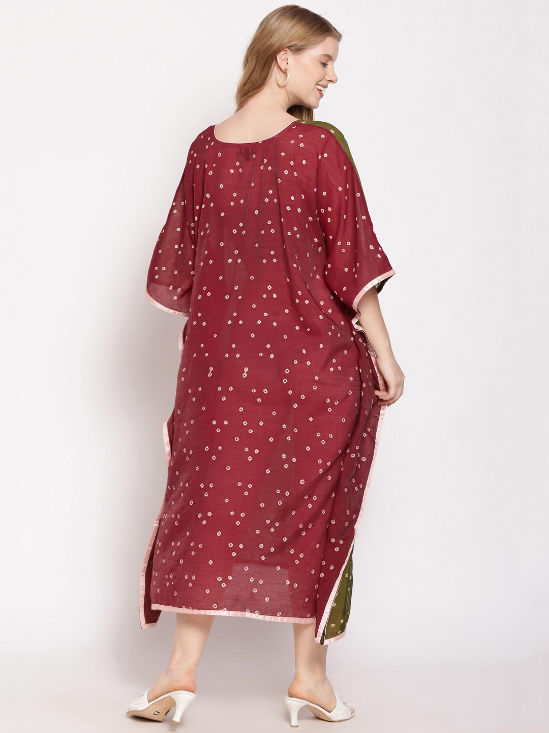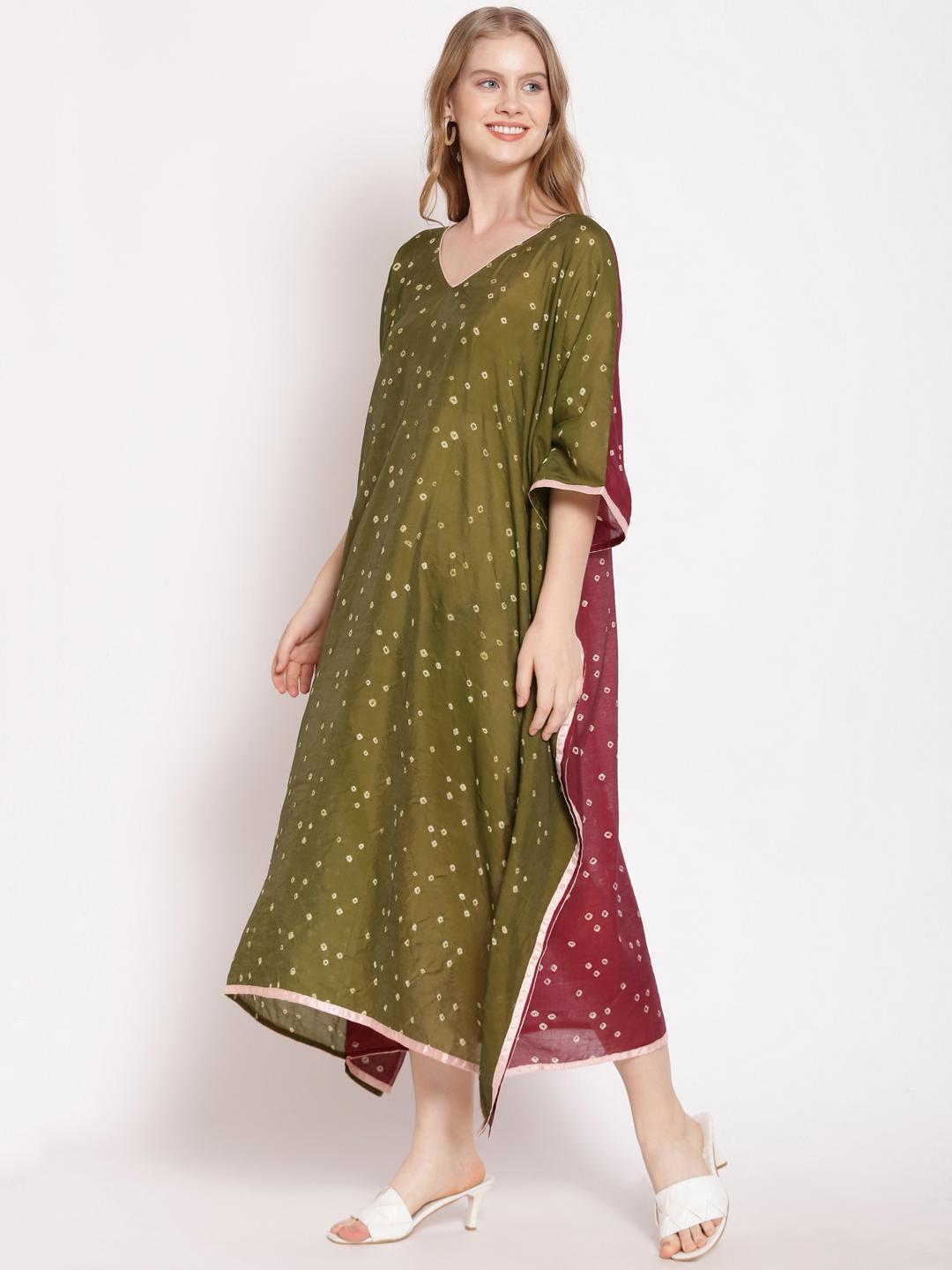 Dark Green Front and Maroon Back Kaftan For Women