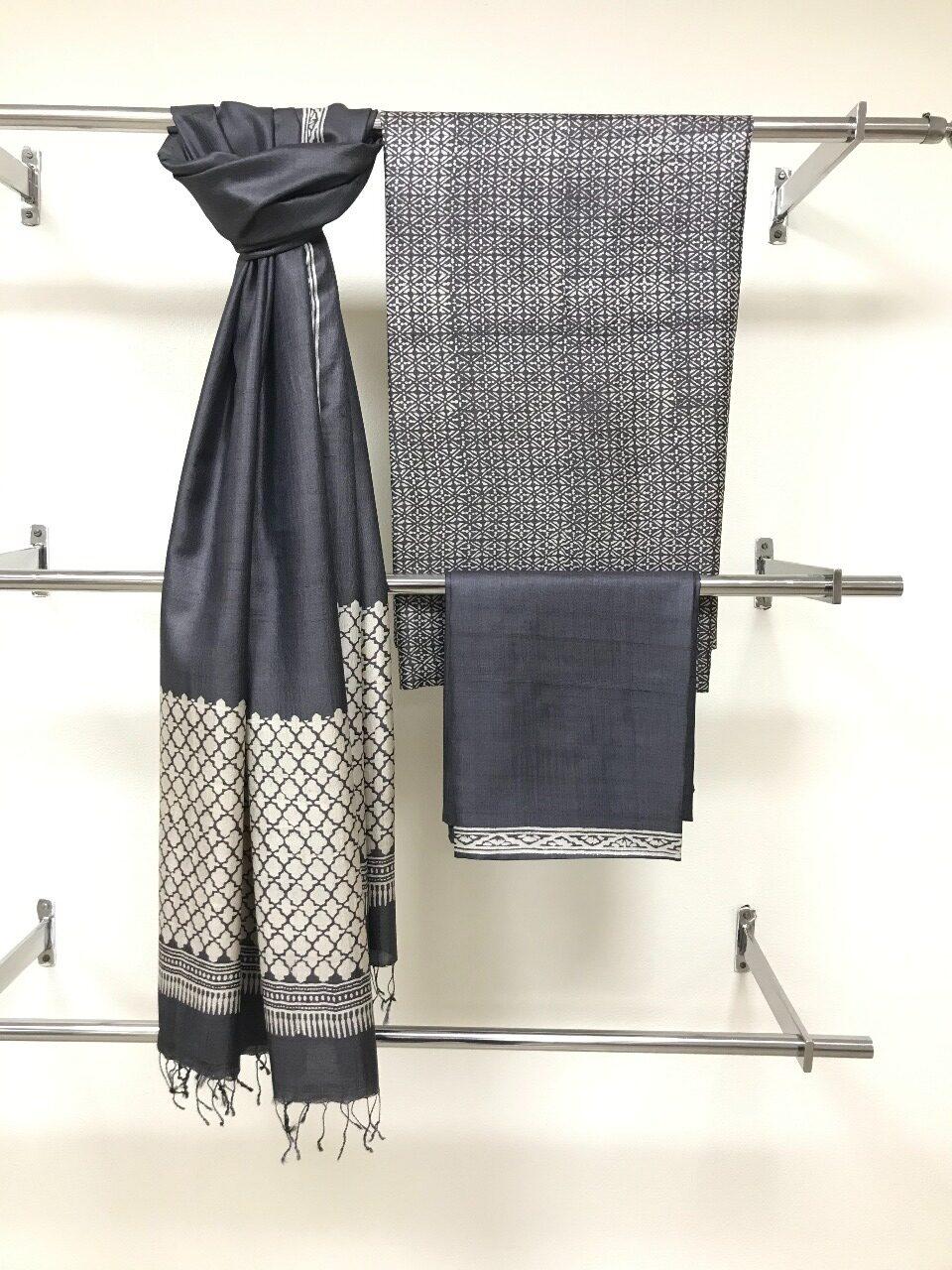 Be the first to review “Dark Grey Taser Shibori Unstitched Suit Set”