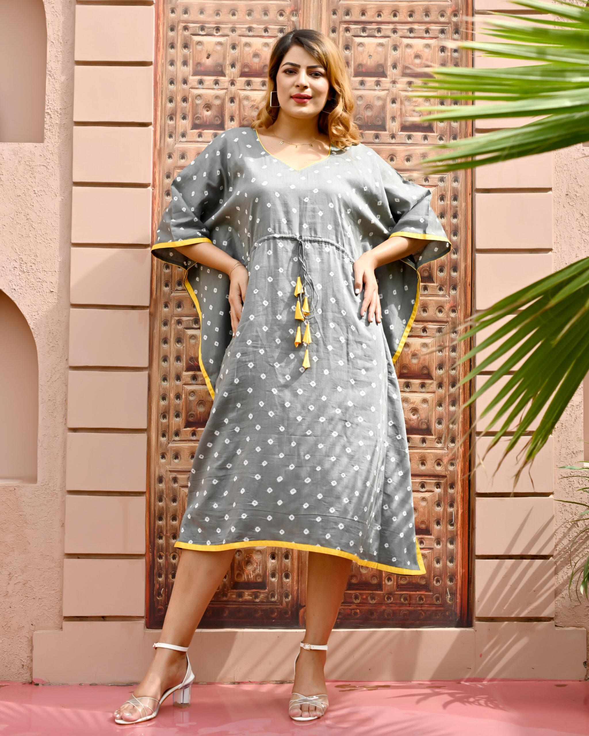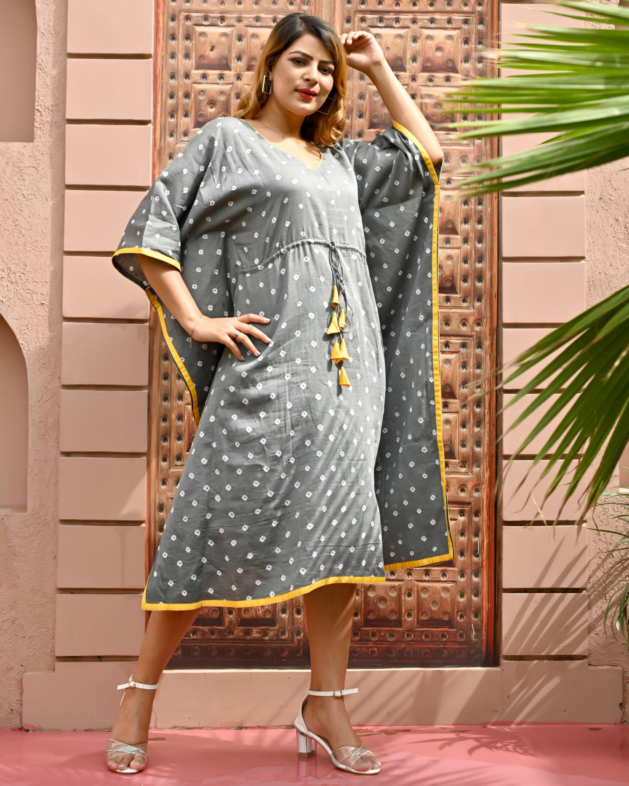 Be the first to review “Grey with Yellow Border Kaftan for Women”