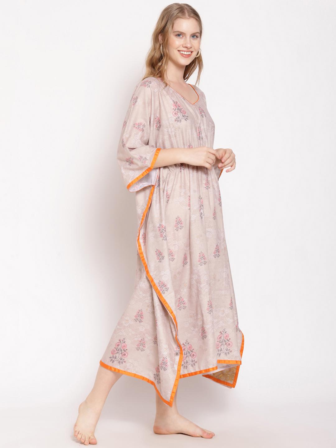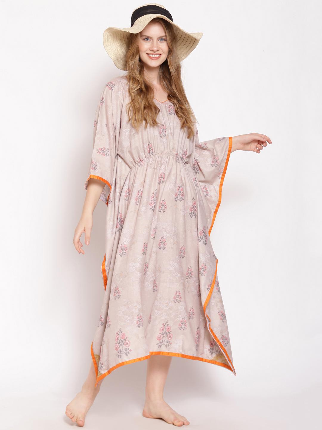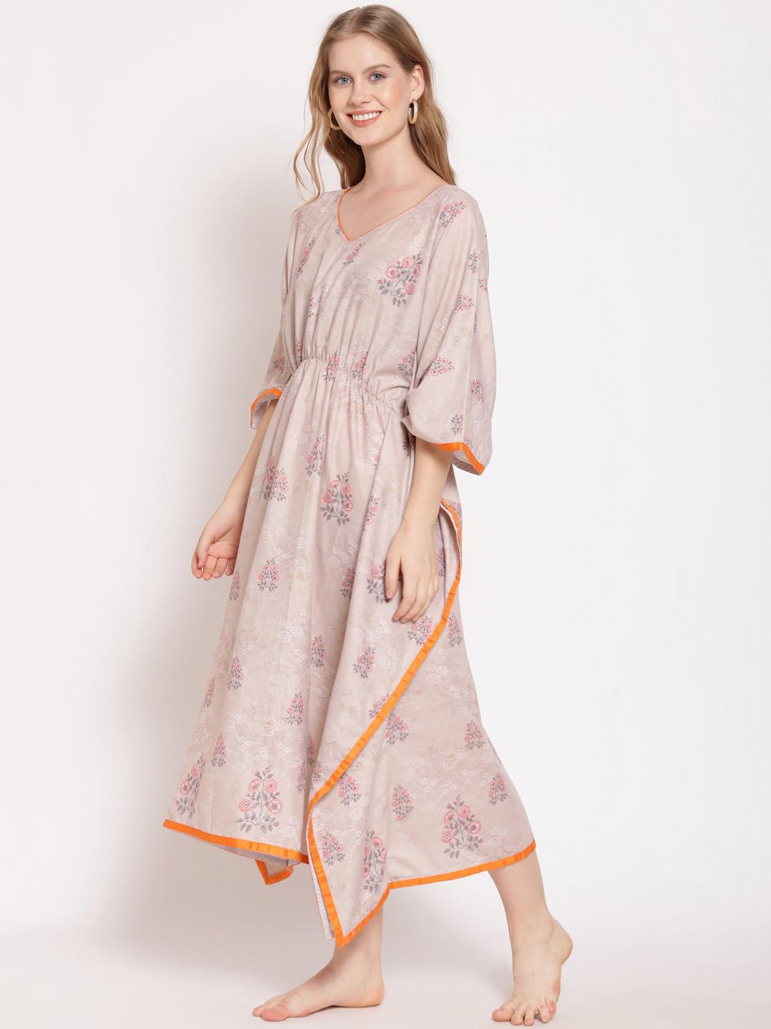 Be the first to review “Light Purple with Orange Border Cotton Kaftan For Women”