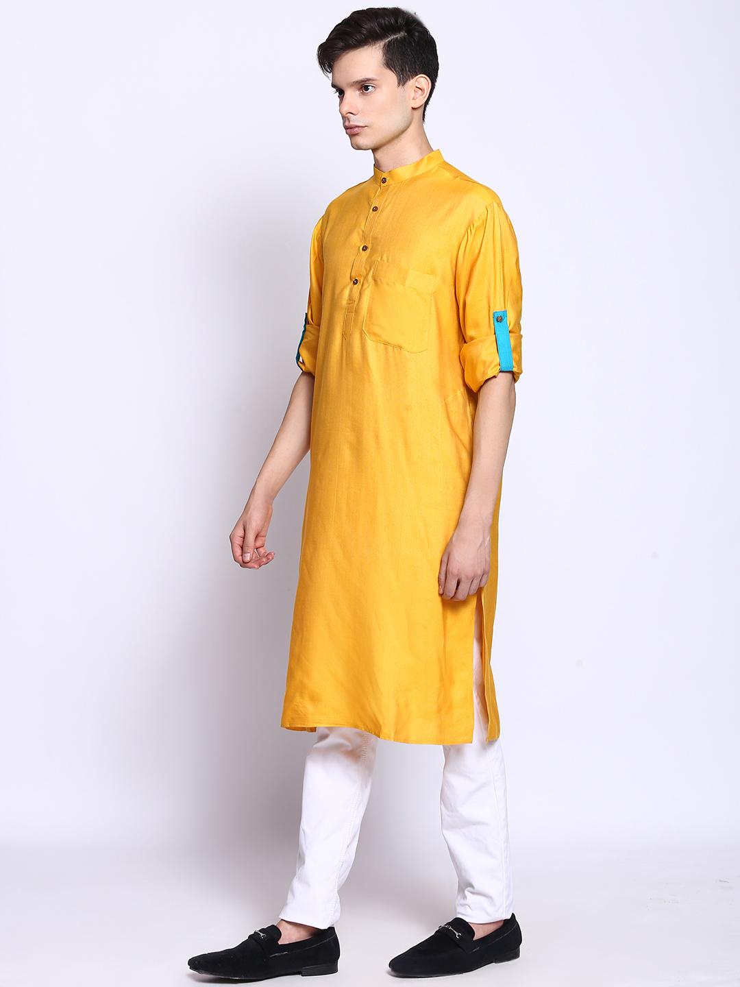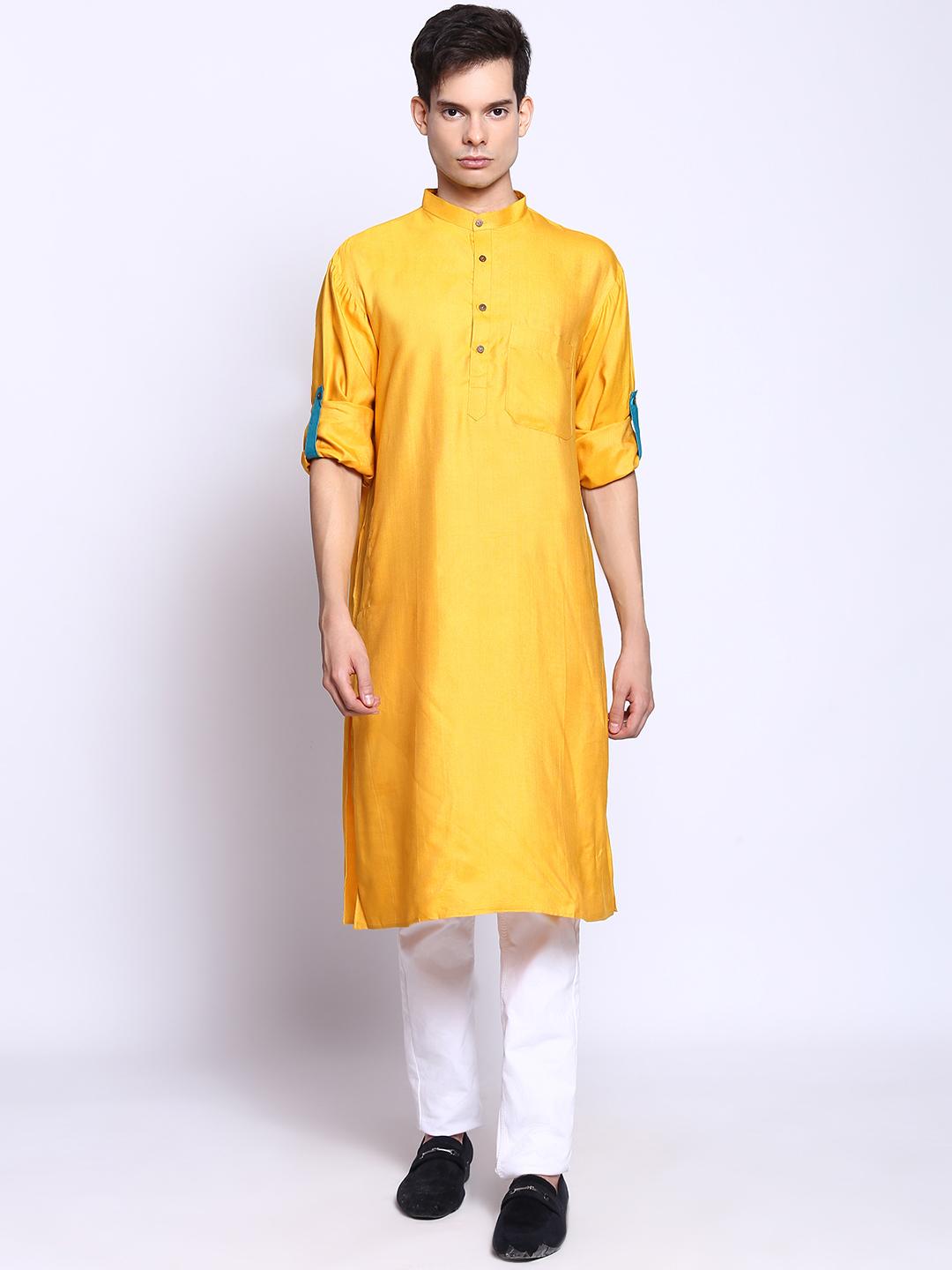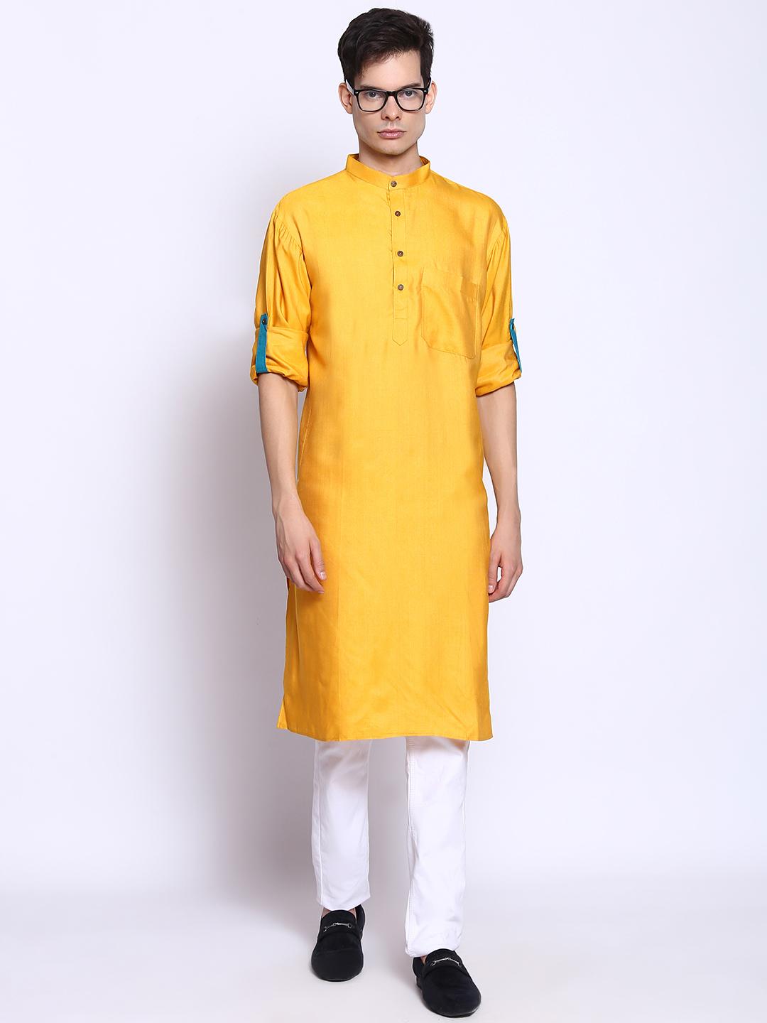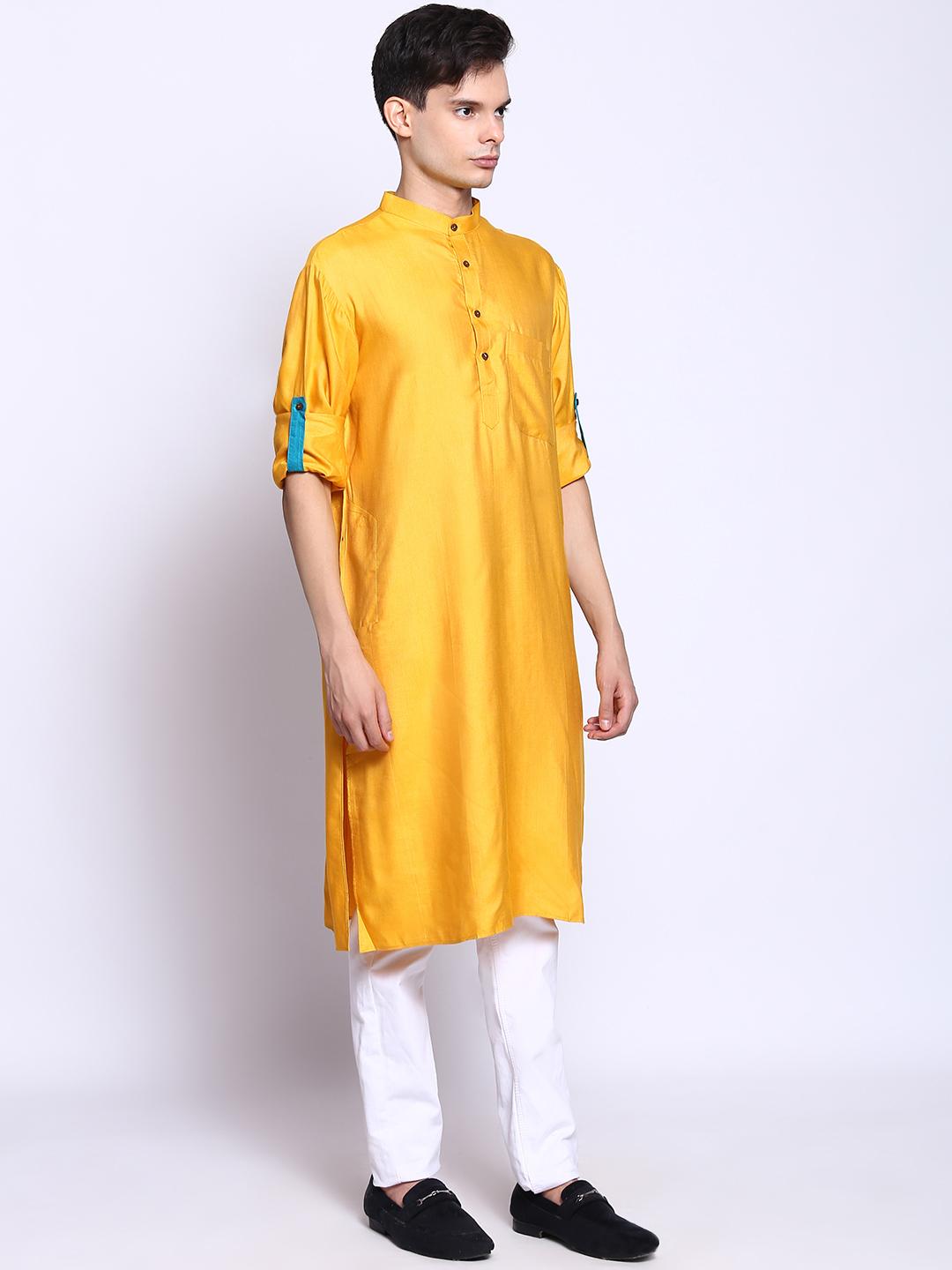 Be the first to review “Yellow Silk Viscose Kurta For Men”