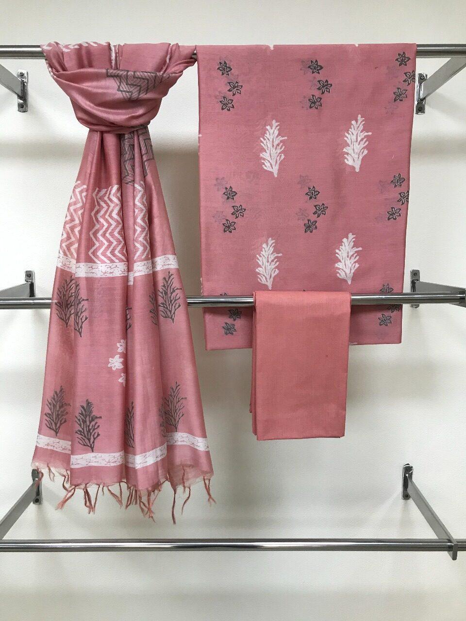 Be the first to review “Pink Chanderi Unstitched Suit Set”