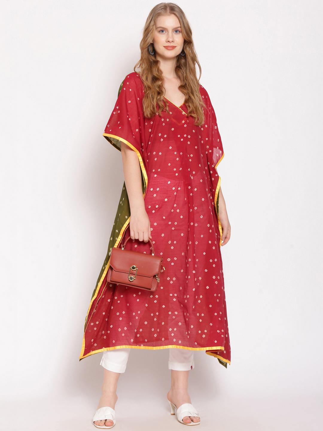 Be the first to review “Red and Green Bandhani Kaftan For Women”